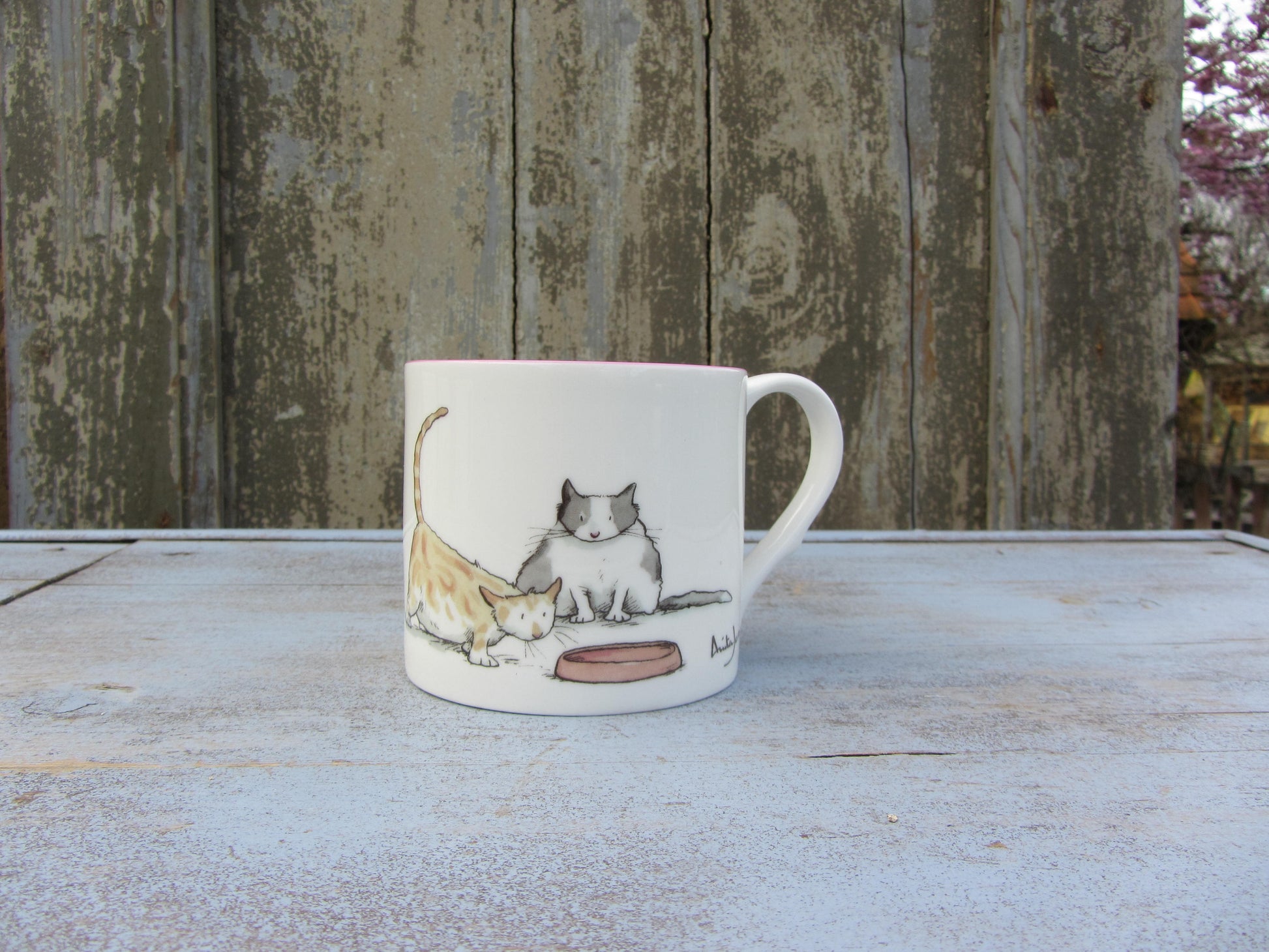 Leuke mok van Two Bad Mice. Goed doorvoede katten..... Fine Bone China. Inhoud 300cc maat M. Getekend door Anita Jeram.