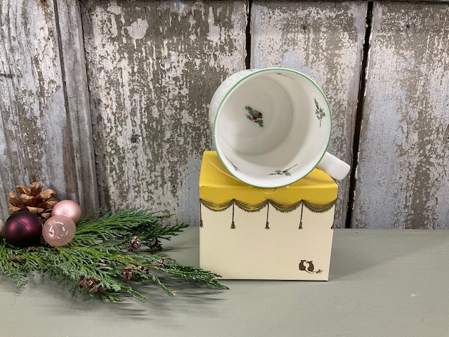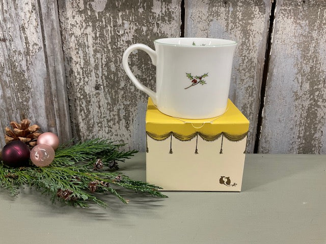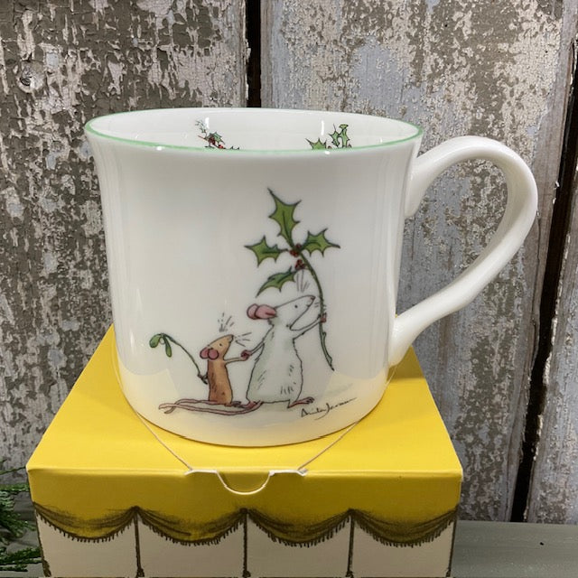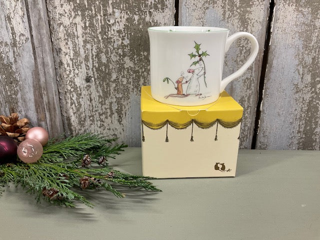 Kerstige mok van Two Bad Mice. Fine Bone China. Inhoud 200cc maat S. Getekend door Anita Jeram.